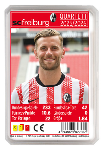 | SC Freiburg Quartett 25/26 | Das SC Freiburg Quartett 25/26! Mit allen aktuelllen und einigen ehemaligen Stars. | € 5,99 | ![]() |