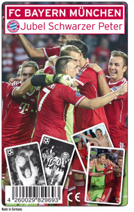 Immer zwei Karten mit Spieler bilden ein Paar. Und da Paare abgelegt werden können, bleibt die Karte mit dem Schwarzen Peter übrig. Wer diese Karte am Ende hat, bekommt ein schwarzes Pünktchen auf die Nase (möglichst aber mit einem Schokoladenstückchen, das danach aufgegessen werden darf). 25 Karten, für 2-6 Spieler ab 4 Jahren. Klicke auf einen Verein, um Dir alle Karten anzusehen: FC Bayern München Borussia M'Gladbach SV Werder Bremen Eintracht Frankfurt |