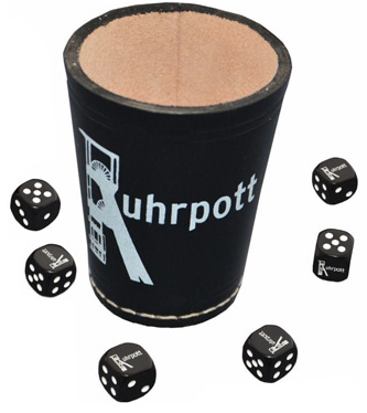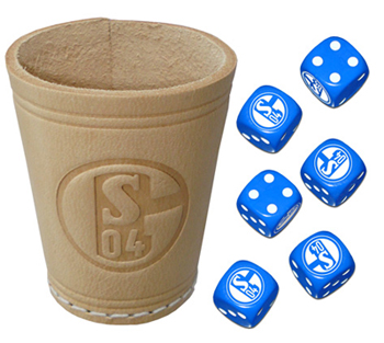 Ab sofort gibt es einen neuen Leder-Würfelbecher von Schalke 04. Außerdem erhältlich: BVB, Bayern München, Hertha BSC, Fortuna Düsseldorf, Alemannia Aachen, Werder Bremen, 1. FC Kaiserslautern, 1. FC Köln, Bor. Gladbach, Eintracht Frankfurt, Arminia Bielefeld und HSV. |