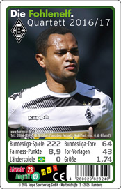 Und so sieht die selbe Karte nach dem 4. Spieltag aus. Alaba hat bei drei der vier Bundesliga-Spielen gespielt, hat also 78 statt 75 Spiele, 8 statt 7 Tore und 19,5 Fairness-Punkte statt 18,8. | ![]() |