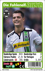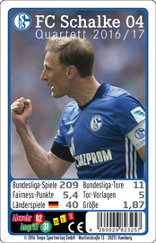 | Das Kartenspiel mit den Mannschaftsfotos der Schalke-Geschichte. 45 große Spielkarten mit vielen Zahlen und Fakten über die alte und junge Schalke 04-Vergangenheit. Gespielt wird nach "Fußball-Regeln" (z. B. "Wie viele Bundesliga-Spiele gewann Schalke in der Saison 1979/80?"). Für 2-6 Spieler ab 6 Jahren; € 6,99 Das gleiche Spiel gibt es auch von Bayern München, vom BVB, Werder Bremen und dem HSV. |