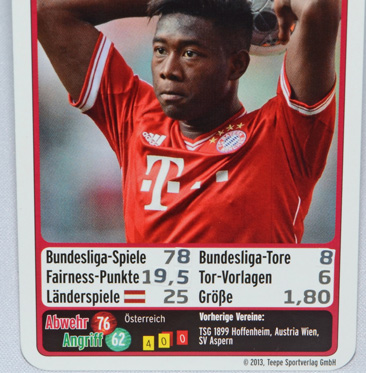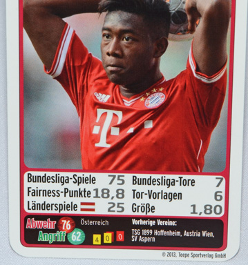 | So sieht die Karte von David Alaba im FC Bayern Quartett 2013/14 aus.