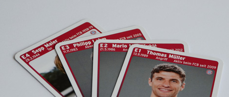 Ein Spieler beginnt und wählt eine Kategorie aus, in der sein Star gut zu sein scheint. Er liest laut vor, z. B.: „Martin Stranzl, 179 Bundesliga-Spiele.“ Die Mitspieler lesen dann der Reihe nach vor, wie viele Bundesliga-Spiele ihre oberste Karte aufweist. Wer den höchsten Wert hat, gewinnt die Karten der Mitspieler und steckt sie unter seinen Stapel. Der Gewinner darf bestimmen, welche Kategorie im nächsten Vergleich zählt. Bei gleichen Werten kommen die Karten in die Mitte. Die Spieler mit den gleichen Werten machen ein „Stechen“ mit der nächsten Karte. Wer hier gewinnt, bekommt die Karten aus der Mitte und die Karten des Stechens. Sobald ein Spieler keine Karte mehr besitzt, endet das Spiel. Es gewinnt dann derjenige, der die meisten Karten hat. |