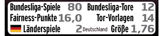 | Die Punkte setzen sich so zusammen: Anzahl der Bundesligaspiele geteilt durch gelbe (zählen 1-fach), gelb-rote (2-fach) und rote Karten (3-fach). Auch hier gewinnt die höhere Zahl, da sie für weniger Verwarnungen steht. Spieler, die noch keine Bundesligaspiele haben, bekommen 8,0 Punkte. Spieler, die bereits Spiele absolviert, aber keine Verwarnungen erhalten haben, bekommen als Fairness-Punkte die Anzahl ihrer Spiele plus 8,0. |