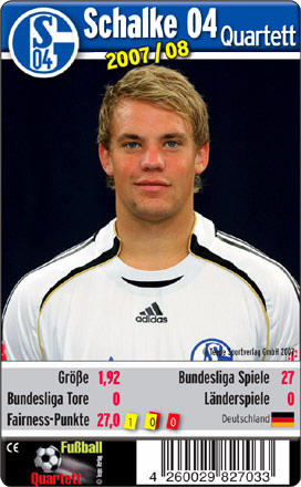 Marcelo Jose Bordon Rafinha Benedikt Höwedes Manfred Dubski Manuel Neuer Mathias Schober Ralf Fährmann Oliver Reck Levan Kobiashvili Gustavo Varela Heiko Westermann Mimoun Azaouagh Ivan Rakitic Mesut Özil Jermaine Jones Mladen Krstajic 32 Karten, 4,90 Euro unverb. Preisempfehlung |
