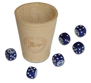 | Fußball-Würfelbecher Ob Kniffel, Backgammon, Würfelpoker oder Paschen - mit Fußball-Würfelbechern des Lieblingsvereins wird jede gesellige Spielstunde noch spaßiger. Jeder Würfelbecher ist mit dem Vereinslogo geprägt, auf den Würfeln steht statt der Sechs das jeweilige Vereinswappen, die Würfel selbst leuchten in den Vereinsfarben. |