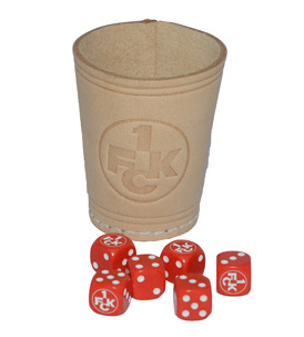 | Fußball-Würfelbecher Ob Kniffel, Backgammon, Würfelpoker oder Paschen - mit Fußball-Würfelbechern des Lieblingsvereins wird jede gesellige Spielstunde noch spaßiger. Jeder Würfelbecher ist mit dem Vereinslogo geprägt, auf den Würfeln steht statt der Sechs das jeweilige Vereinswappen, die Würfel selbst leuchten in den Vereinsfarben. |
