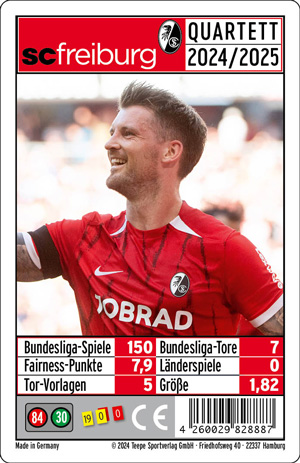 | SC Freiburg Quartett 24/25 | Das SC Freiburg Quartett 24/25! Mit allen aktuelllen und einigen ehemaligen Stars. | € 5,99 | ![]() |