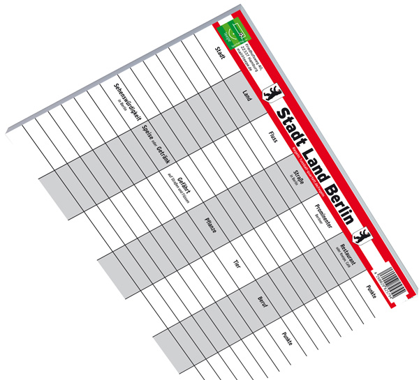 | Stadt Land Berlin | Stadt Land Berlin ein Block mit 50 Bögen. Wer zuerst die Felder aller Kategorien ausgefüllt hat, ruft fertig. | ![]() |