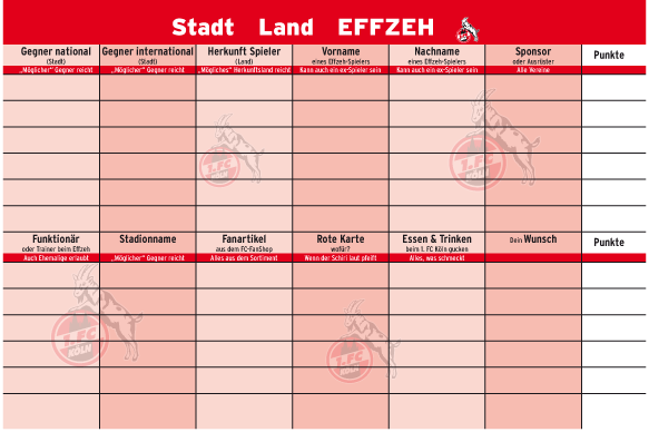Die Regeln Jeder Teilnehmer bekommt einen Spielbogen und einen Stift. Einigt Euch, ob Ihr mit allen zwölf Kategorien oder nur mit sechs spielen wollt. Nun wird der Buchstabe ermittelt, mit dem alle zu suchenden Begriffe beginnen müssen. Einer beginnt still, das Alphabet aufzusagen, und ein anderer ruft „Stopp“, wodurch der Buchstabe ermittelt ist. Jetzt beginnen alle zu schreiben. Wer zuerst die Felder aller Kategorien ausgefüllt hat, ruft „fertig“. Alle müssen nun das Schreiben beenden. Es kann alternativ mittels Eieruhr eine Zeit festgelegt werden. Wertung: Nun liest jeder Mitspieler vor, welches Wort er in der ersten Kategorie notiert hat. Worte, die mehrere Spieler haben, werden mit 5 Punkten bewertet. Hat ein Spieler ein Wort gewählt, das niemand anderer hat, bekommt er dafür 10 Punkte. Hat ein Spieler ein Wort in einer Kategorie gefunden, die kein anderer Spieler ausgefüllt hat, erhält er 20 Punkte. Nach einer Anzahl vorher festgelegter Spielrunden werden alle Punkte addiert. |